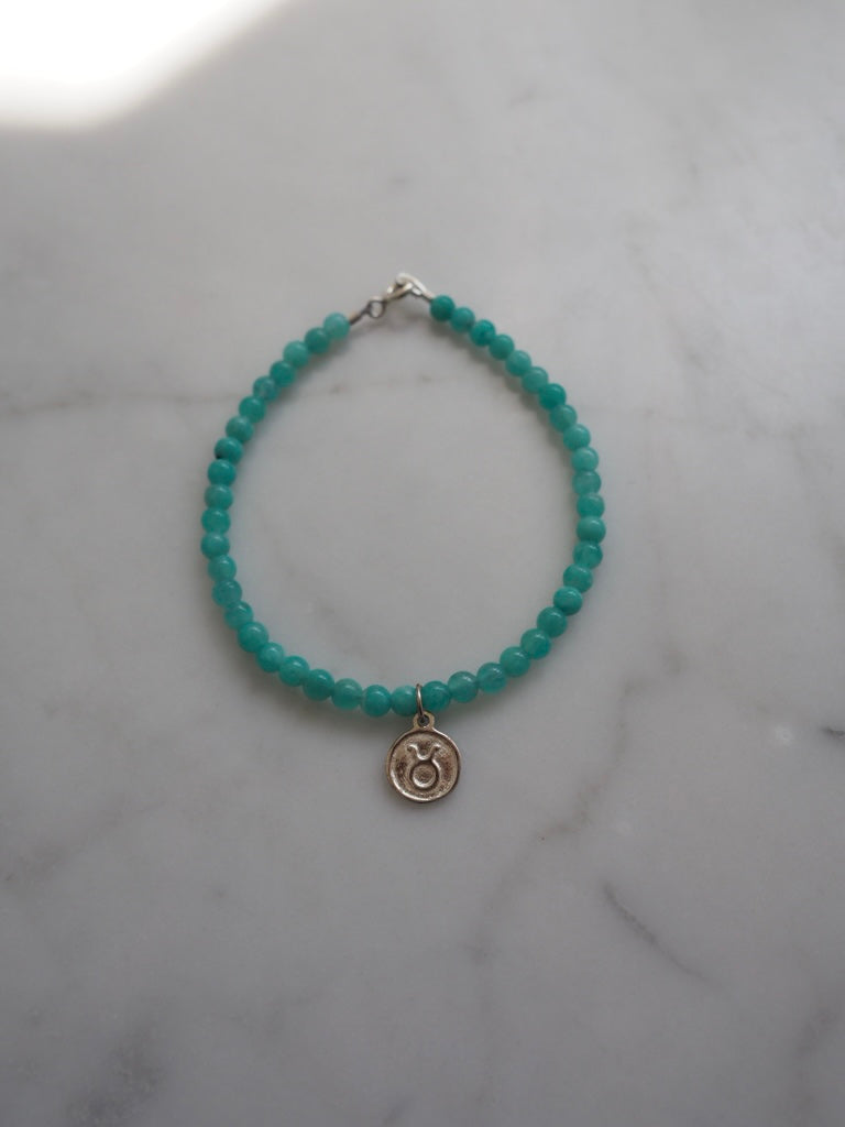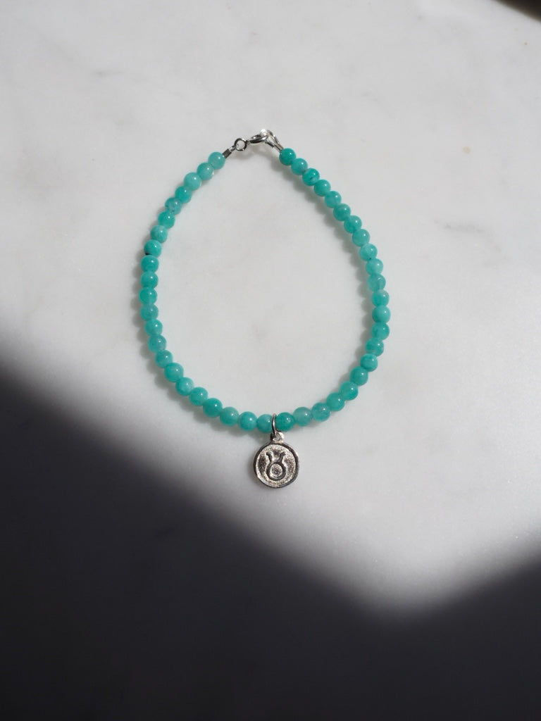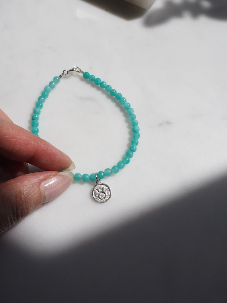This Taurus bracelet is made with the stone, Amazonite that symbolises the earth element energy of this sign.